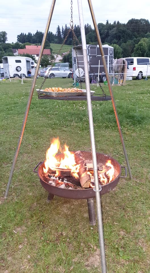 Am Freitag, 17.07 hieß es packen für den 5. Hopfenmeiler! Um 16:00 Uhr wurden die Pony´s eingeladen und im Konvoi mit Teamkollegin Kratzer Melanie ging es los Richtung Au in der Hallertau. Spätabends kamen unsere treuen Trosser Anne Peters und Steffi Liesl dazu. Das war unser erster Start für uns Schnecken im Jahr 2020, deshalb hatten wir uns vorgenommen, mal nur 40 km unter die Hufe zu nehmen. Bei Ankunft haben wir viele bekannte Gesichter gesehen und die Wiedersehensfreude war riesig! Bei der Anmeldung wurden wir von unserer hochgeschätzten Jutta freudig begrüßt und erhielten Checkkarte und Kartenmaterial und ein kleines Begrüßungsgeschenk. Natürlich alles mit Mund Nasen Schutz, so wie es sich gehört! Kontaktformulare für die Trosser wurden ebenfalls ausgefüllt. Voller Elan sind Melanie und ich mit unseren geschätzten Reittieren zur Voruntersuchung, wo wir freundlich von den Tierärzten Fr. Dr. Nicole Hieber und Fr. Dr. Alexandra Prell begrüßt wurden. Allerdings gab es da die ersten „FastTränen“ ! Melanie hatte den Impfpass nicht mehr geprüft und war ein paar Tage über dem Impftermin. Regeln sind halt mal Regeln und so kam es, dass Okar und ich am nächsten Tag alleine auf die Strecke mussten. Das erwies sich anfangs als recht schwierig. Der ansonsten ganz umgängliche Okar hatte ohne seinen Freund Django, der ihm die nötige Ruhe und Sicherheit gibt, ziemlich mit seinem schwachen Nervenkostüm zu kämpfen! Aber wir ließen uns nicht unterkriegen und tatsächlich, nach den ersten 30 km durch die wunderschönen Hopfengärten, wurde Okar zufriedener und der Puls immer besser! Wir konnten den Ritt in LK1 mit einer Reitzeit von 03:27:00 mit Top Werten beenden. Auch bei der Nachuntersuchung war alles super! Insgesamt war es wieder eine tolle Veranstaltung. Die Corona-Auflagen wurden sehr gut umgesetzt. Das Gelände vom Reit-und Fahrverein Au/Hallertau ist sehr weitläufig und bietet auch saubere Sanitäranlagen was für uns Distanzreiter schon ein wenig Luxus ist! Vielen Dank dafür! Verpflegung gab es heuer wegen Corona nicht, aber da wir Distanzreiter ein recht unkompliziertes Volk sind, hat das einfach jeder selber übernommen. Die Bayerwaldschnecken hatten Grillschale und Holz dabei und schon gab es leckere Steaks und Grillbrot dazu! Juttas Team war durchwegs total nett und hilfsbereit! Kurz gesagt – WIR KOMMEN WIEDER!